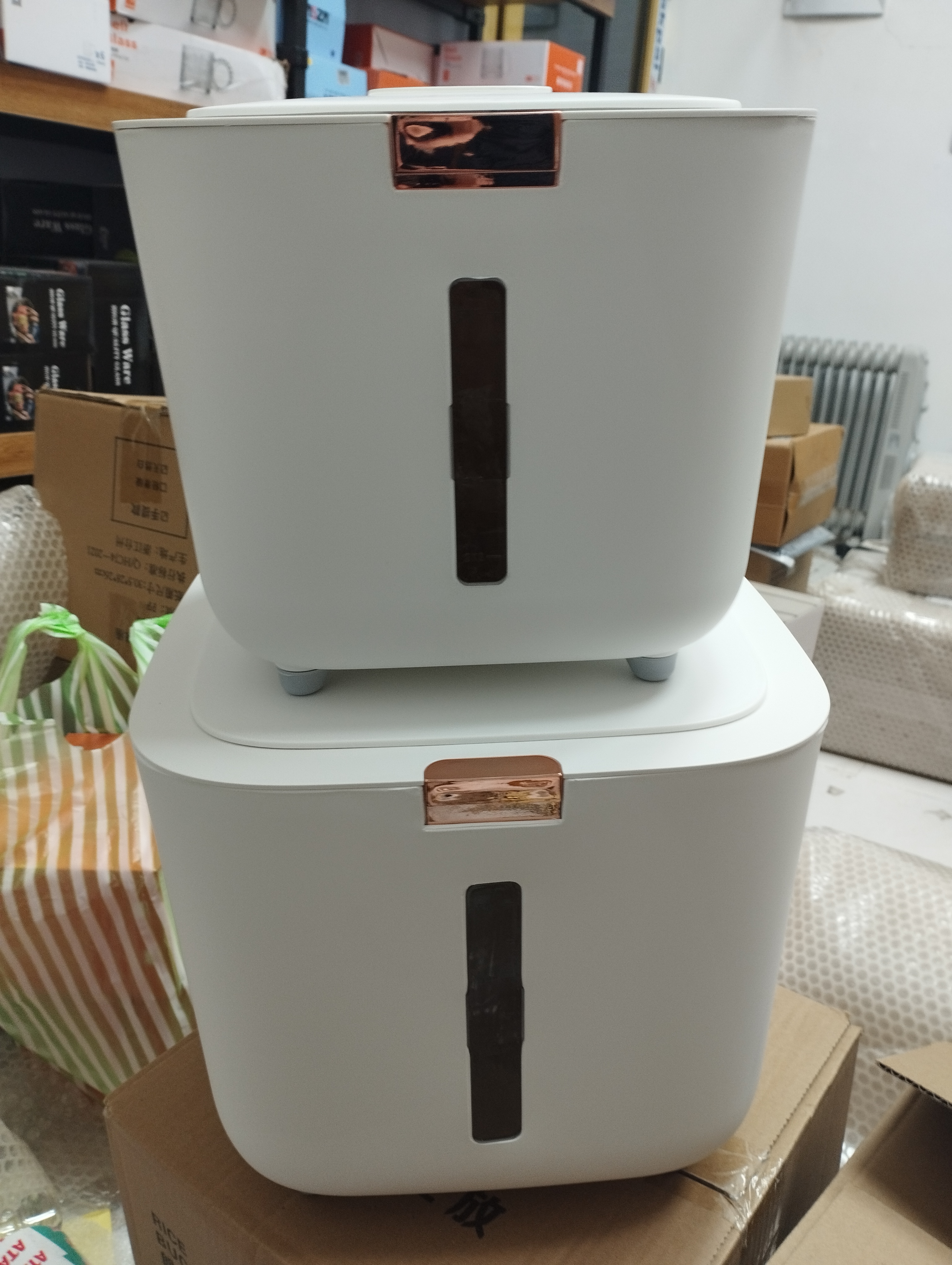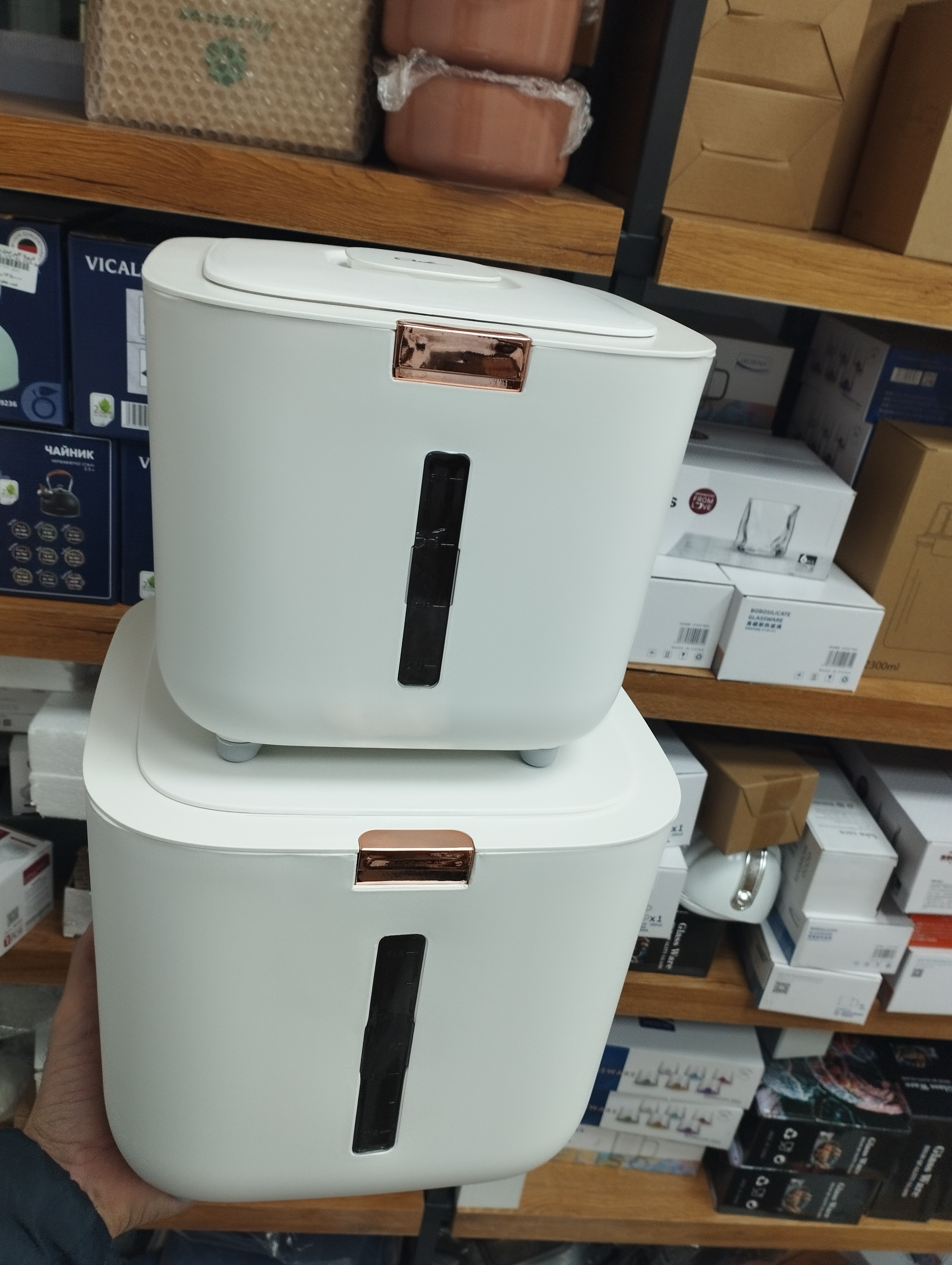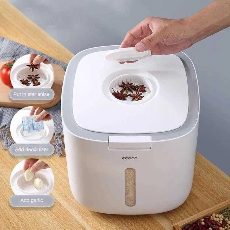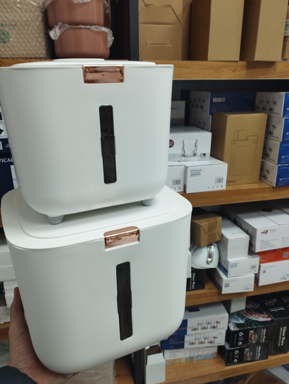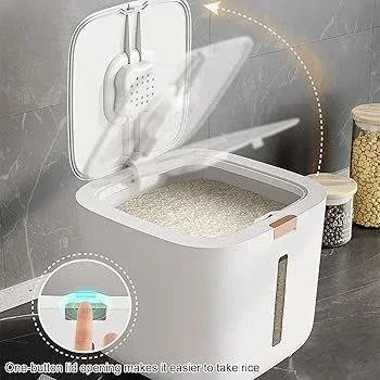 جابرنجی 5 کیلویی پرفروشمون رسید 😍 با کیفیت عالی جنس بدنه پلیمر(ABS+pp) درب کیلیکی دارای محفظه نگهدارنده سیر و میخک و عدم حشره زدن برنج و حبوبات دارای پیمانه دسته دار درب دارای واشر حجم : 10 کیلو گرم