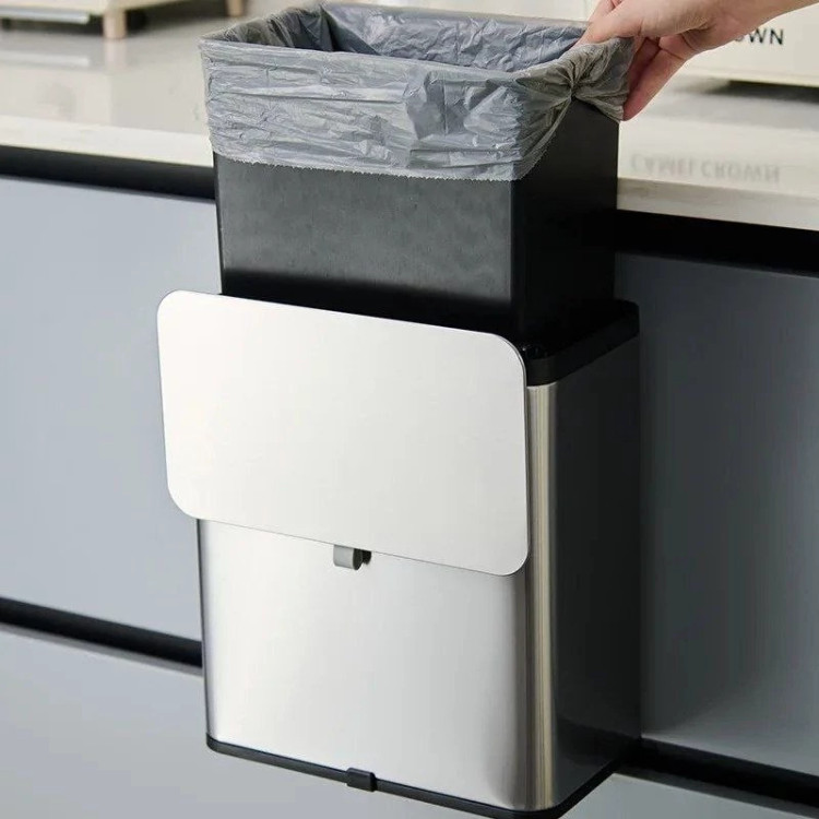سطل کابینتی استیل بهترین کیفیت موجود محصول وارداتی درجه یک جنس : استیل حجم : 3 لیتر دارای هولدر نگهدارنده درب کابینت دارای چسب دو طرفه برای نگهداری روی دیوار ابعاد : 21,5*19,5*11,5 سانتیمتر