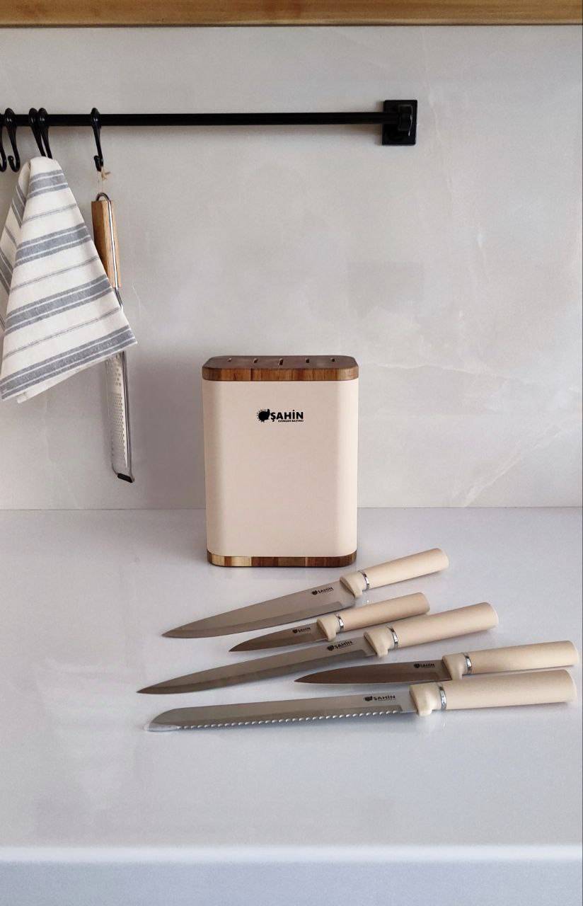 ست چاقو استندمستطیلی ۶پارچه محصول کشور ترکیه🇹🇷