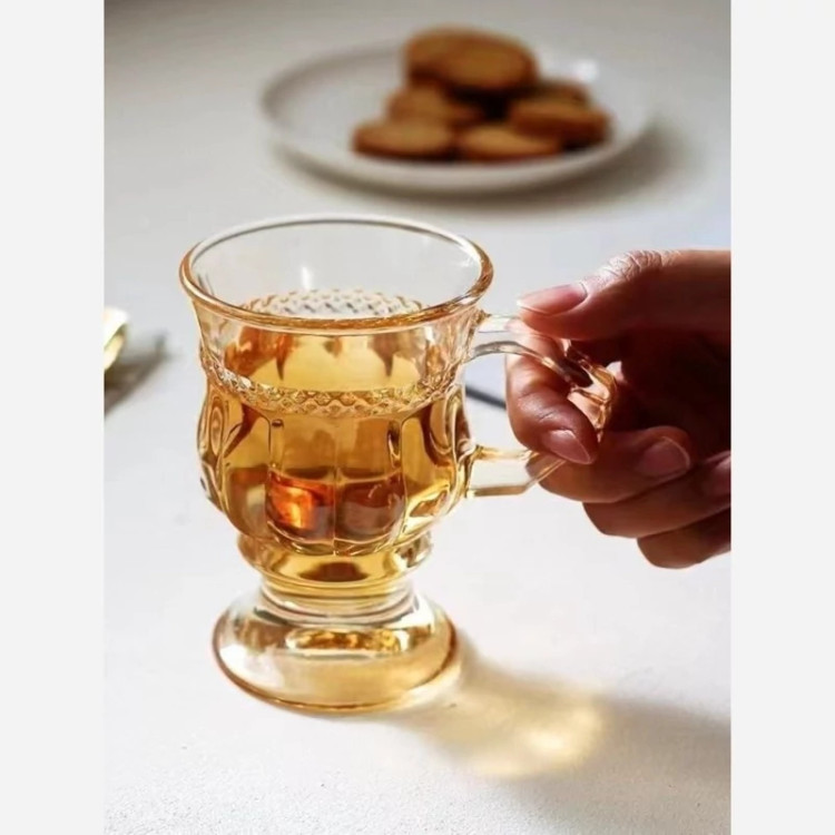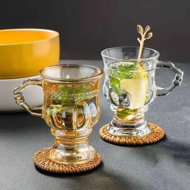 طرح جذاب فنجان چایخوری BLINKMAXE کیفیت شفاف و بلوری مقاوم دربرابر گرما بسیار باکیفیت فنجان پایه دار قطر دهانه 7 ارتفاع 10 سانتیمتر